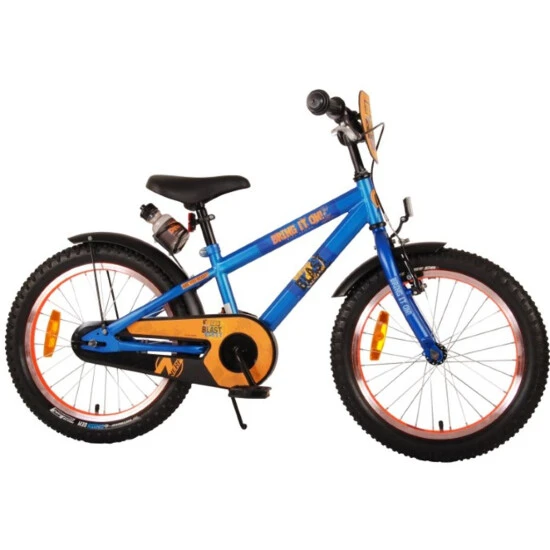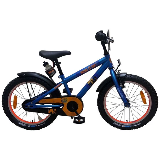 Die NERF Spiele werden durch die Geschwindigkeit dieses coolen Bikes noch spannender. Dieses supercoole Bike ist ganz im Stil der orange-blauen NERF blasters gehalten. Der geometrische Rahmen macht dieses Fahrrad zu einem echten Hingucker. Das Fahrrad hat extra breite 18-Zoll-Fett-Reifen, die das Fahrrad für Jungen zwischen 4 und 7 Jahren mit Konfektionsgröße 104-116 geeignet machen. Auch die Schutzbleche sind extra groß und schön geformt, damit sie den ganzen spritzenden Schmutz aufhalten. Zur Sicherheit verfügt das Fahrrad über Reflektoren an der Vorder- und Rückseite. Die Griffe und der Sattel sind weich für zusätzlichen Komfort und mit dem Flaschenhalter inklusive Wasserflasche haben Sie immer etwas zu trinken dabei. Zum Schutz kleiner Finger ist der Kettenschutz geschlossen. Es heißt NERF oder nichts!