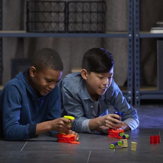 Dieses Set ist der perfekte Einstieg in die rasante Welt von NERF Nitro, die es erlaubt, seine eigenen Renn- und Stuntstrecken ganz individuell aufzubauen.