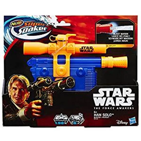 Verteidige die Galaxie und werde zum Helden der Rebellion mit dem Star Wars Episode VII Han Solo Blaster. Dieser 0,2 Liter Blaster kommt mit Abzug-Action und im authentischen Star Wars Design. Mit dieser Super Soaker schießt du bis zu 6 Meter weit.